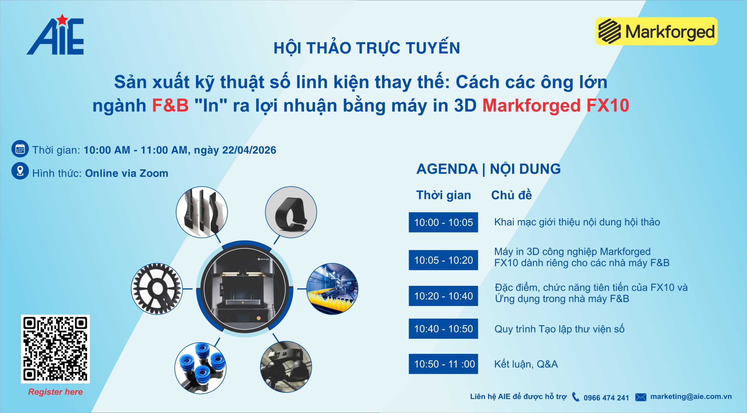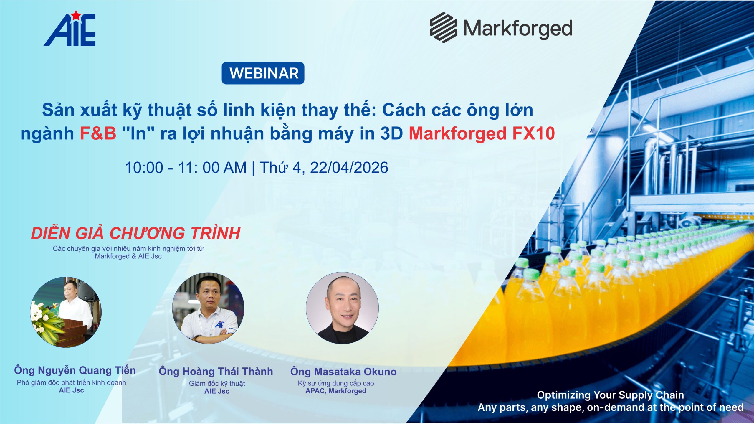 Nhằm mang đến giải pháp đột phá cho bài toán này, Công ty AIE JSC phối hợp cùng hãng Markforged trân trọng kính mời Quý vị tham dự buổi Hội thảo trực tuyến: